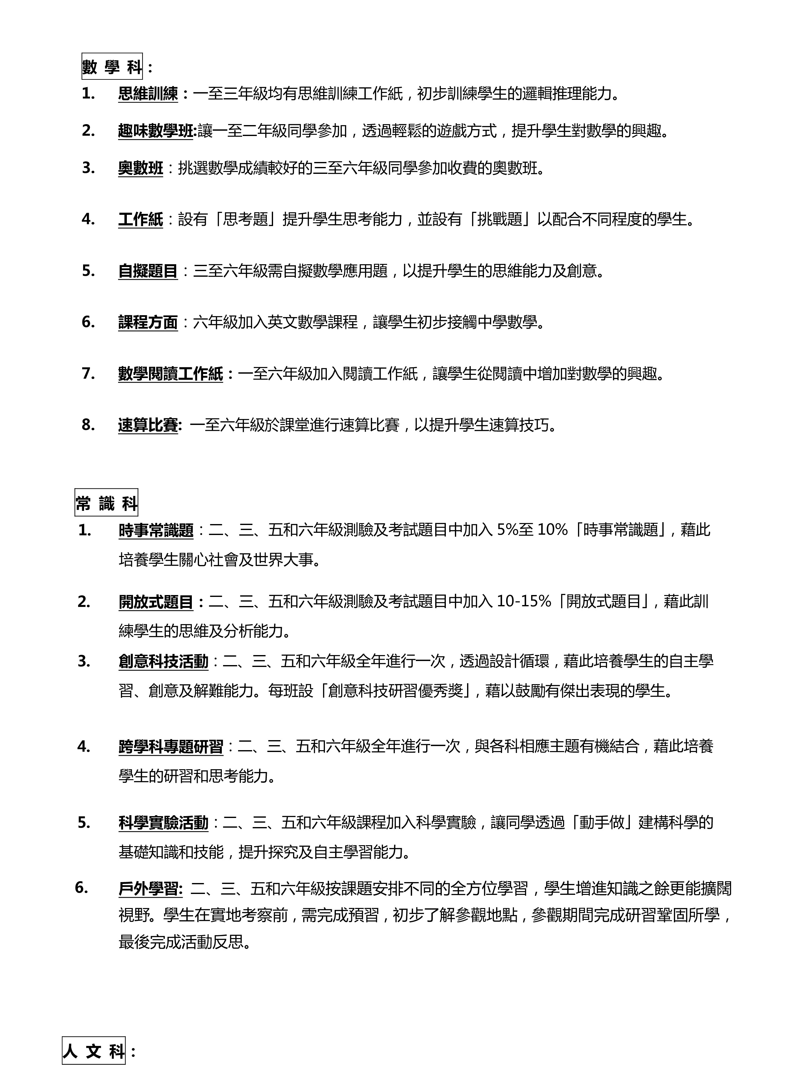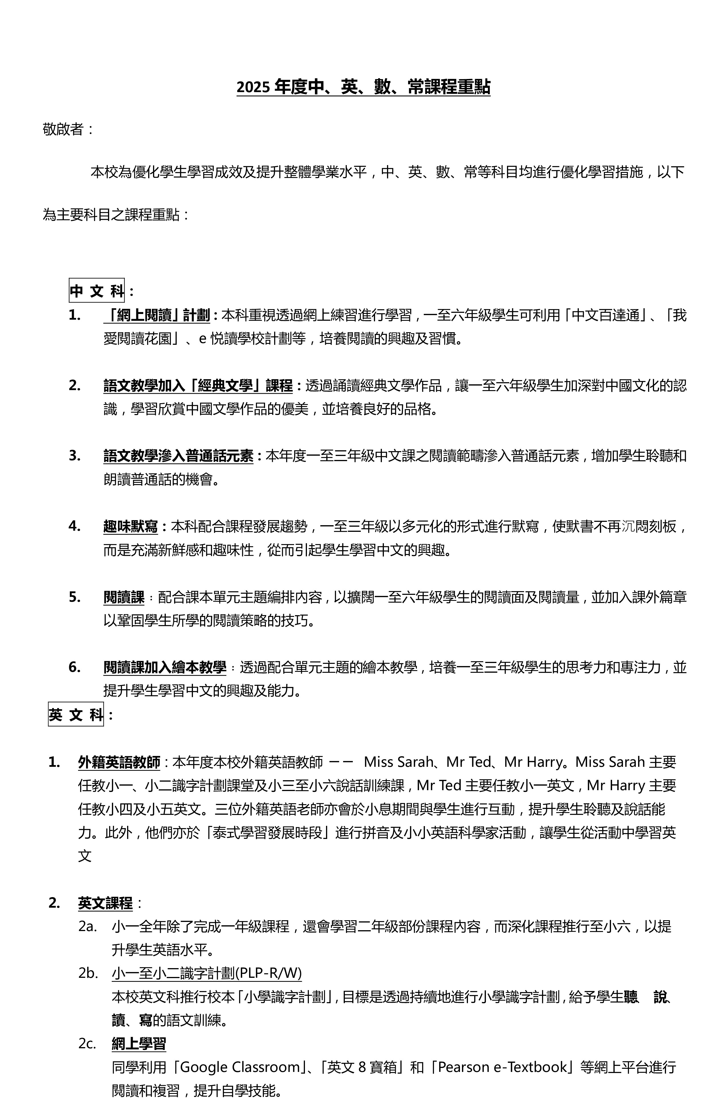 中英數常課程重點